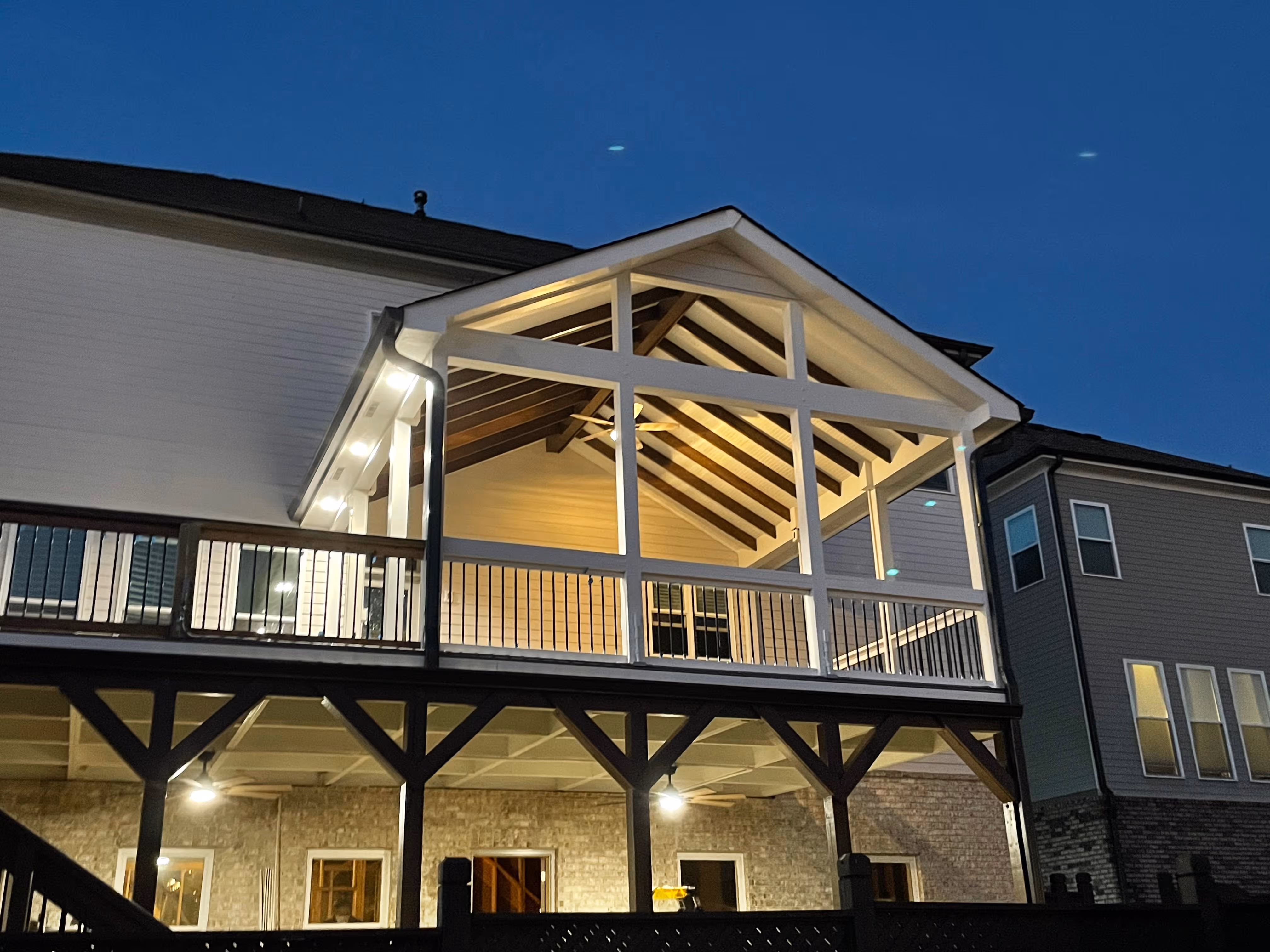 We build with high-performance materials including composite decking, PVC systems, and Brazilian hardwoods selected specifically for durability in Georgia’s climate. The result is a deck that maintains its beauty while requiring less maintenance over time.